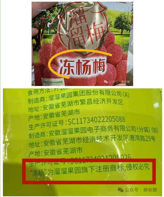 真相很简单:我们熟悉的溜溜梅“冻杨梅”“真乌梅”两款产品,包装上显眼的“冻杨”“真乌”字样,并非对产品工艺或品种的描述,而是溜溜梅注册的专属商标。