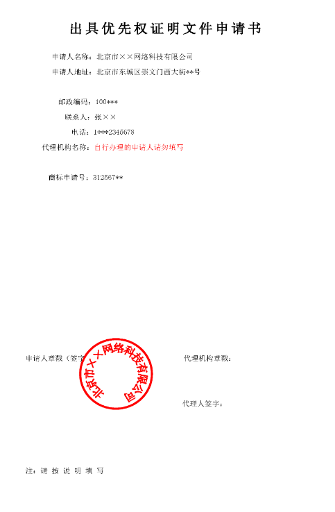 3.填写要求详见《出具优先权证明文件申请书》所附填写说明。