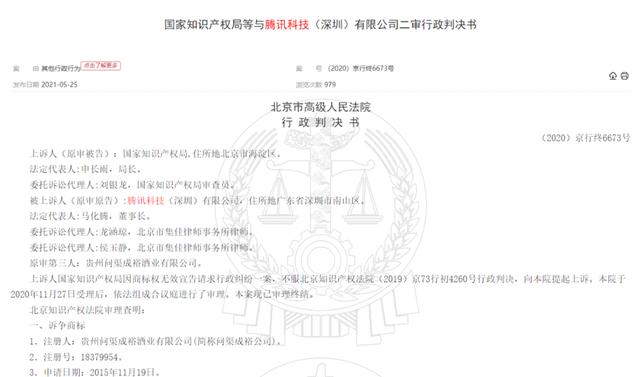 腾讯起诉国家知识产权局,北京高级法院终审胜诉